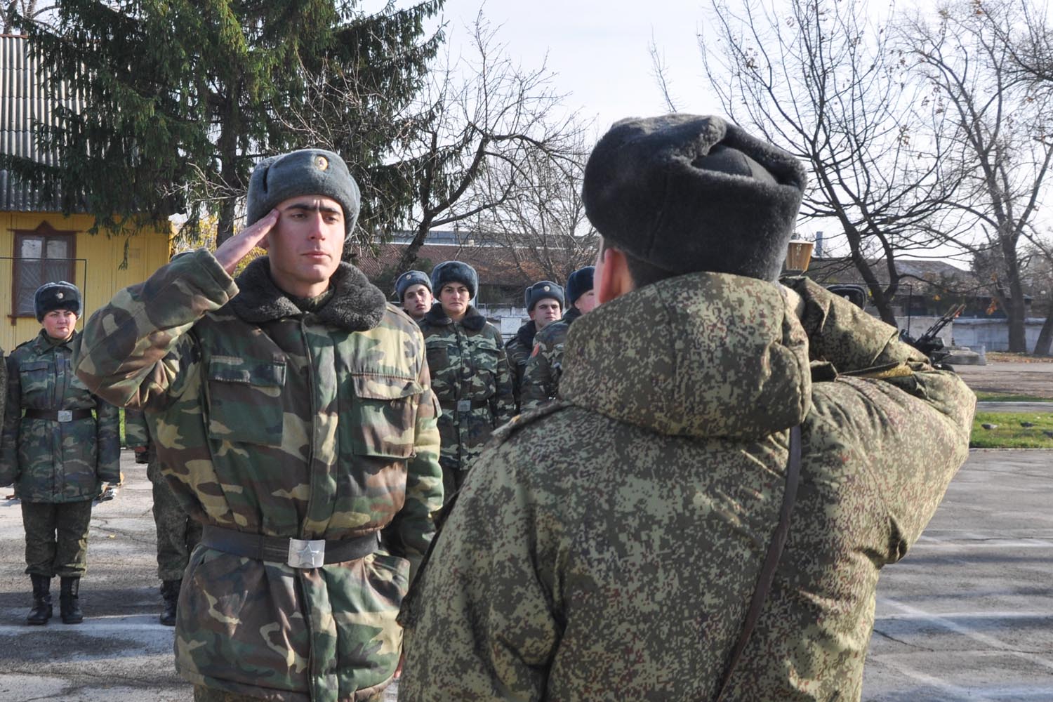 Сегодня в подразделениях прошли строевые смотры. У военнослужащих проверялся их внешний вид, наличие и правильное оформление необходимых документов, содержание штатного оружия, а также укомплектованность вещевых мешков. После смотра подразделения прошли по плацу торжественным маршем и с песней, показав свою строевую слаженность.