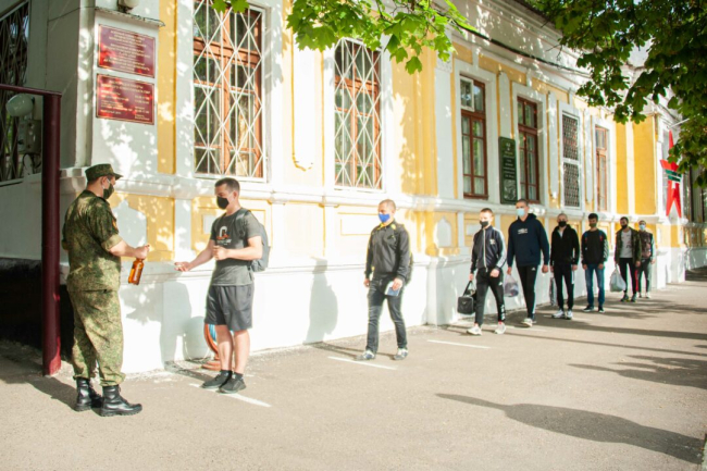Тирасполь, 31 мая. /Новости Приднестровья/. В Приднестровье проходит весенняя призывная кампания. Сегодня новобранцы отправились в воинскую часть. Однако сначала с призывниками провели беседу, у них проверили документы, провели термометрию и дезинфекцию рук. После новобранцы, признанные годными к прохождению службы, оправились на сборный пункт, сообщает пресс-служба Минобороны ПМР.