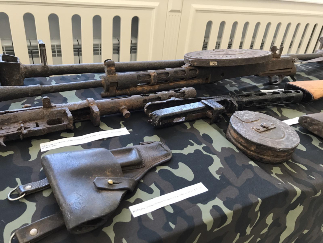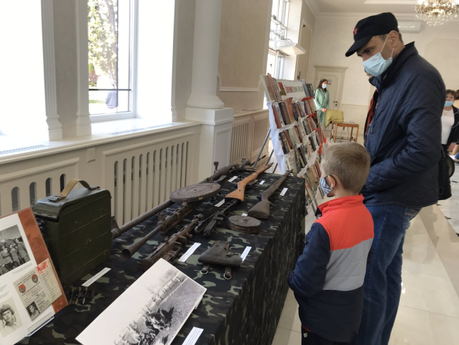 В выставочном зале Екатерининского парка демонстрируют оружие, амуницию, книги и рисунки военных лет