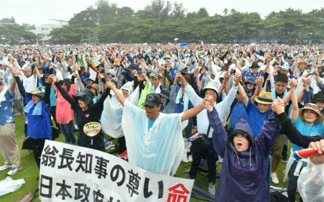 Участники мероприятия приняли резолюцию, призывающую центральное правительство отказаться от плана переноса базы. По мнению протестующих, американским военным следует покинуть остров.
