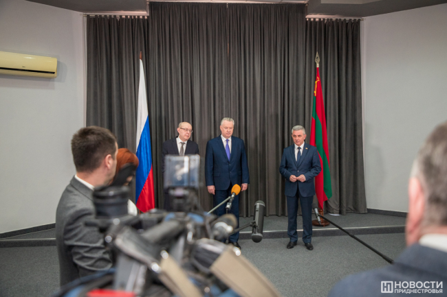 Тирасполь, 23 марта. /Новости Приднестровья/. По завершении встречи Президент ПМР Вадим Красносельский и руководители прибывших в Приднестровье с рабочим визитом российских делегаций Александр Лукашевич и Виталий Тряпицын пообщались с представителями СМИ.