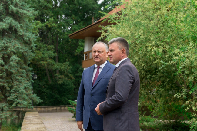Вадим Красносельский и Игорь Додон встретились в официальной загородной резиденции Президента РМ в районе села Кондрица. После обмена приветствиями глава молдавского государства пригласил приднестровского коллегу пройтись по территории, прилегающей к резиденции. Диалог двух президентов «без галстуков» проходит без участия членов официальных делегаций, сопровождающих лиц и СМИ, сообщает пресс-служба Президента ПМР.