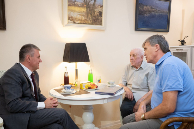 «Вадим Красносельский прибыл к ветерану домой, чтобы от себя лично, ото всех приднестровцев и от имени каждого благодарного потомка выразить почтение и благодарность. Руководитель страны отметил, что невозможно переоценить честь и удовольствие общения с Владимиром Ивановичем», - сообщает пресс-служба главы государства.