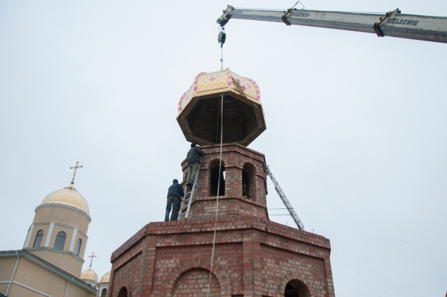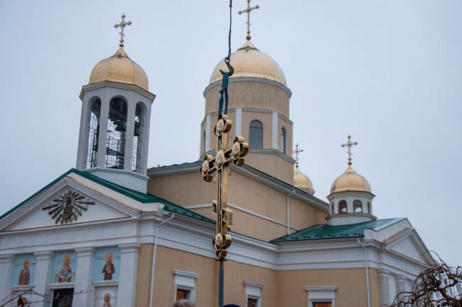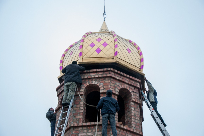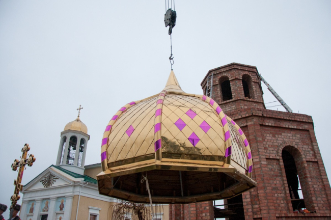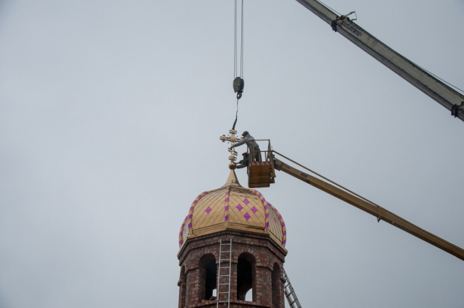 Бендеры, 27 ноября. /Новости Приднестровья/. В часовне при Александро-Невской церкви сегодня установили купол и православный крест. Напомним, храм был построен ещё в первой половине XIX века, в советское время он пришёл в запустение. В 2008 году по инициативе Вадима Красносельского началась работа по реставрации церкви, и спустя три года она была открыта. А в августе этого года при храме была заложена часовня в память о расстрелянной 99 лет назад семье последнего российского императора. За несколько месяцев возвели стены, которые сегодня и увенчали куполом и крестом.