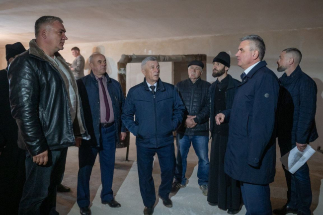 Вадим Красносельский осмотрел не только основные помещения будущего храма, но и подвальные, предназначенные для трапезной и библиотеки. Участники выездной встречи обсудили текущие вопросы, связанные с дальнейшими строительными и оформительскими работами.