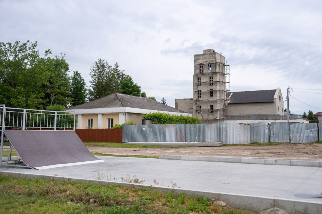 Проектом продумано металлическое ограждение объекта. Предусмотрена система водоотвода. Началу общестроительных работ мешают проливные дожди, рассказали сегодня Вадиму Красносельскому.