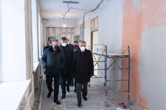 Глава государства ознакомился с ходом ремонтных работ и поздравил студентов с праздником