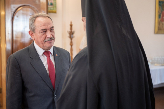 Тирасполь, 27 сентября. /Новости Приднестровья/. Президент ПМР Вадим Красносельский посетил Тираспольско-Дубоссарскую епархию в связи с юбилеем правящего архиерея. Высокопреосвященнейший Владыка Савва отмечает сегодня 65-летие. Глава государства прибыл лично поздравить и выразить почтение архиепископу, сообщает пресс-служба Президента ПМР.