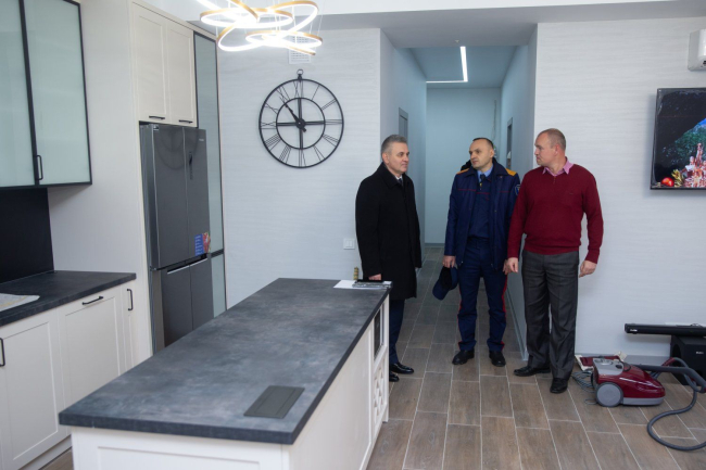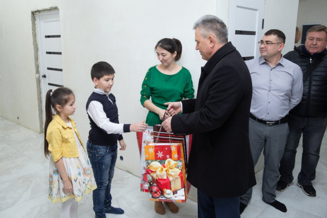 В нынешнем году строительство жилого дома было завершено. Сейчас в квартирах идут ремонты. Пять из двадцати квартир уже заселены. Глава государства побывал в гостях у новоселов, поздравил с обретением собственного жилья и с наступающими новогодне-рождественскими праздниками.