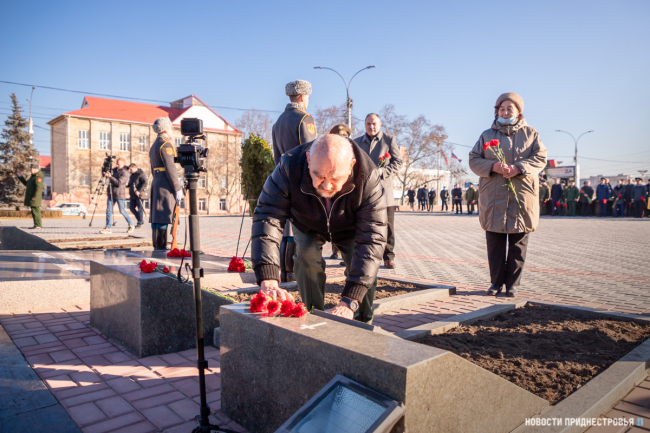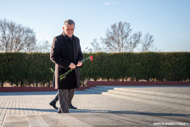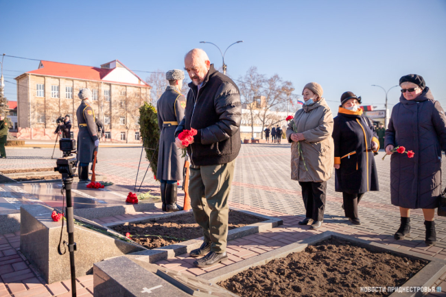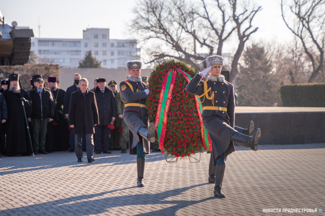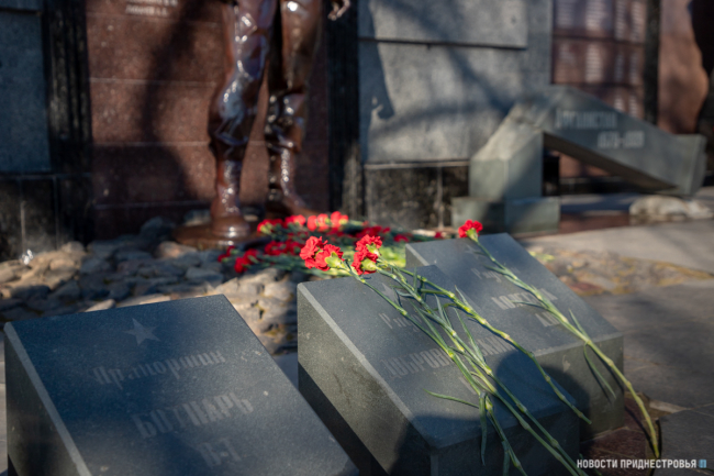 Цветы к могилам захороненных на Мемориале Славы воинов возложили заместитель председателя Верховного Совета Галина Антюфеева и вице-премьер Станислав Касап. Также дань уважения отдали первый Президент Игорь Смирнов, представители ОГРВ и российских миротворцев, военнослужащие приднестровской армии, суворовцы и духовенство.