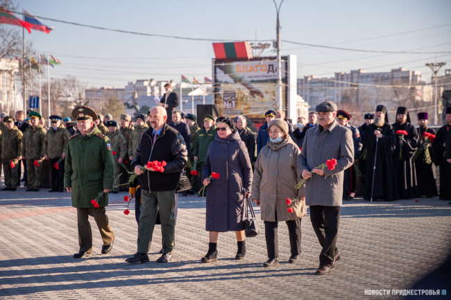 «На сегодняшний день он приобрёл иное значение – в этот день мы чтим всех защитников Отечества. Если говорить о нашей Родине, о Приднестровье, то в различные эпохи здесь погибали за независимость, за свободу: и во времена Российской империи, когда Приднестровье было форпостом южных рубежей России, будь то Великая Отечественная война, когда изгоняли отсюда фашистского супостата, будь то 1990-1992 годы, когда приднестровский народ боролся с молдавским национализмом и с агрессией. В различные эпохи были защитники», – сказал Вадим Красносельский.