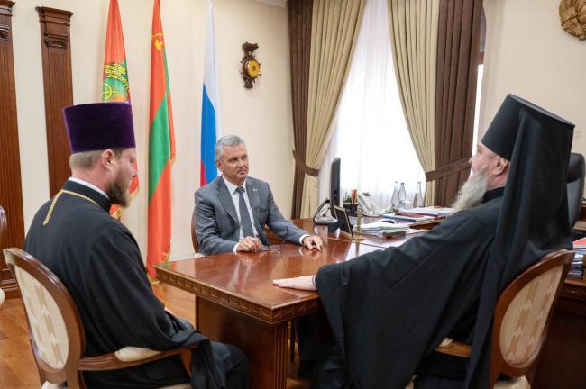 Тирасполь, 11 июля. /Новости Приднестровья/. Президент ПМР Вадим Красносельский провёл встречу с архиепископом Тираспольским и Дубоссарским Саввой, которого сопровождал отец Сергий, сообщает пресс-служба главы государства.