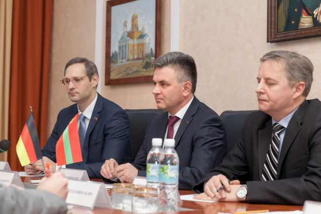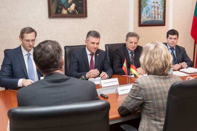 В частности, в ходе встречи речь шла о развитии взаимодействия ПМР и Германии в торгово-экономической сфере, в том числе в контексте перспектив дальнейшей работы по оптимизации механизма торговли Приднестровья с Европейским союзом.