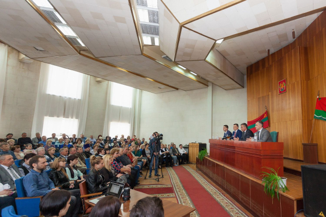 В зале дубоссарской госадминистрации собрались представители различных отраслей и сфер. Первый вопрос, который волновал дубоссарцев, не приведёт ли переход на нейтральные номерные знаки для автомобилей к потере приднестровской государственности. Вадим Красносельский подчеркнул, что при принятии данного решения были учтены принципиальные моменты, касающиеся соблюдения интересов граждан нашей республики.