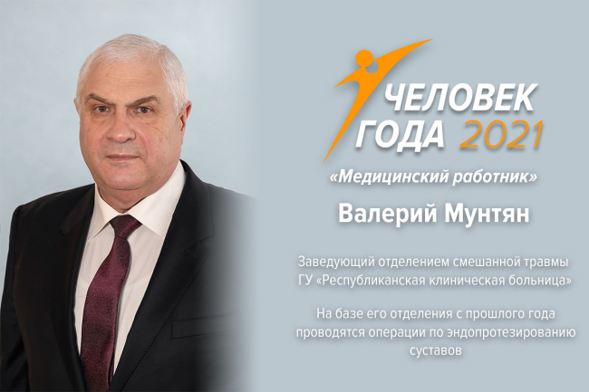 Тирасполь, 26 февраля. /Новости Приднестровья/. «Медицинским работником года» XXV художественно-публицистического конкурса «Человек года – 2021» стал заведующий отделением смешанной травмы ГУ «Республиканская клиническая больница» Валерий Мунтян.