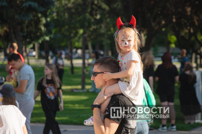 Для гостей также устроили танцевальные флешмобы и увлекательные игры. В сквере работали творческие мастерские, где дети могли поучаствовать в различных мастер-классах и украсить лицо аквагримом.