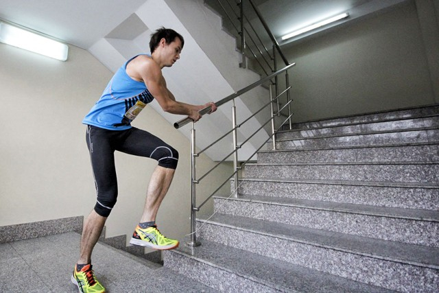 Участникам соревнования предстояло пробежать по лестничным маршам на 8 этаж и обратно