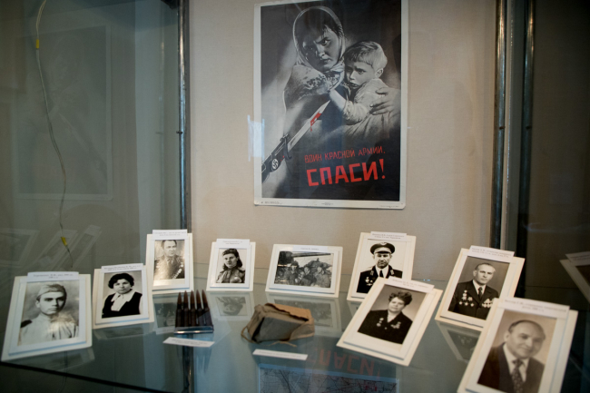 В экспозиции представлены фотографии, документы и другие экспонаты времён Великой Отечественной войны