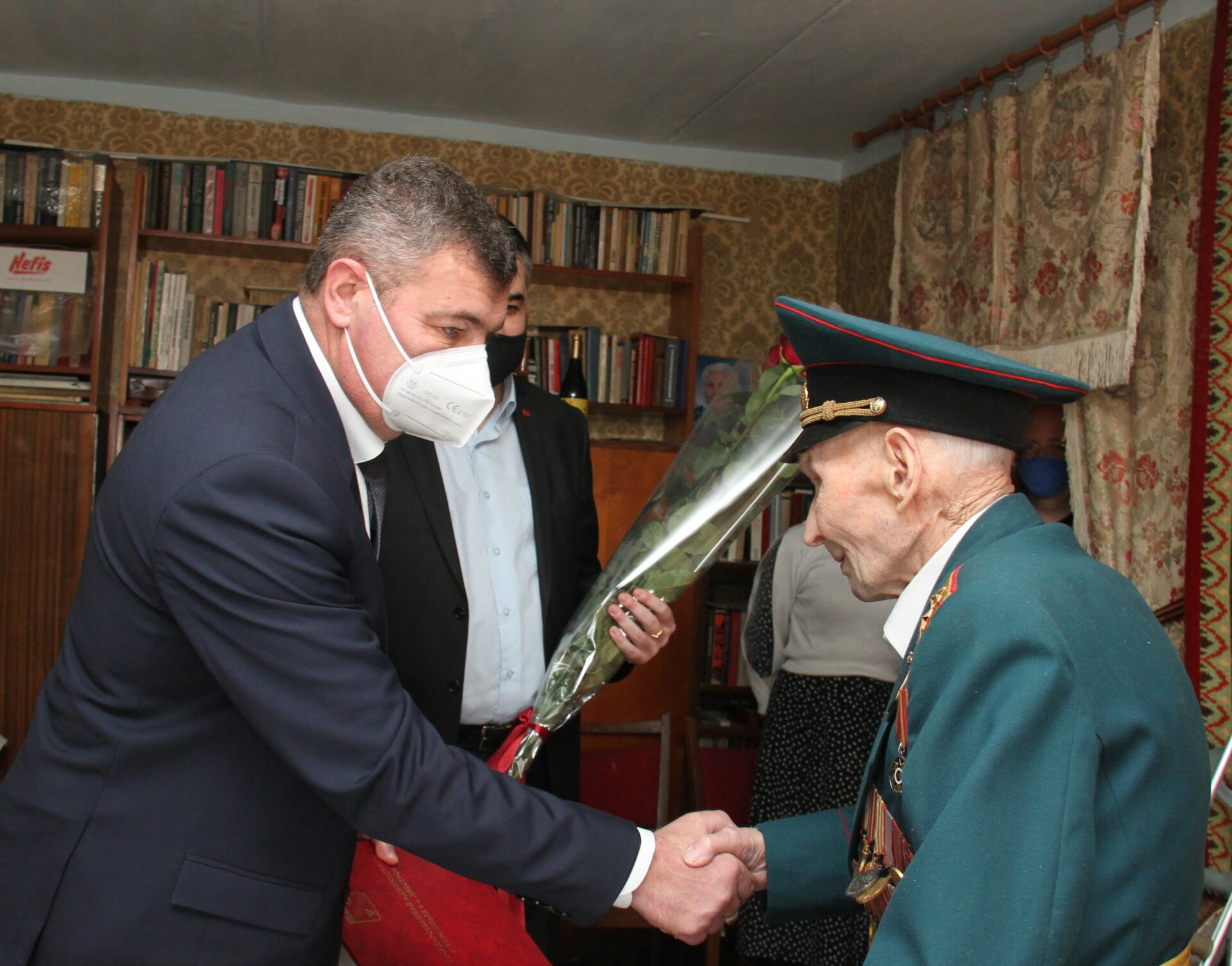 Тирасполь, 5 апреля. /Новости Приднестровья/. Ветеран Великой Отечественной войны Иван Николаев отмечает 95-й день рождения. Юбиляра поздравили глава столичной госадминистрации Олег Довгопол и председатель тираспольского Совета народных депутатов Вадим Дони.