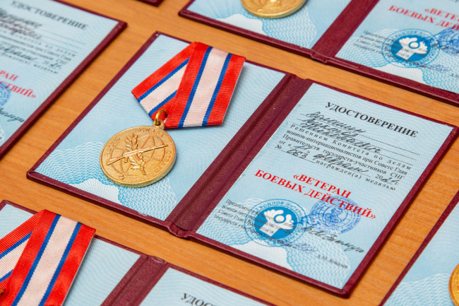 Медаль «Ветеран боевых действий» получил командир ТСО южного направления Сергей Васиян. Он рассказал, что под его командованием находились молодые ребята, у каждого из них были дети, но они не побоялись и с гордостью пошли защищать свою республику.
