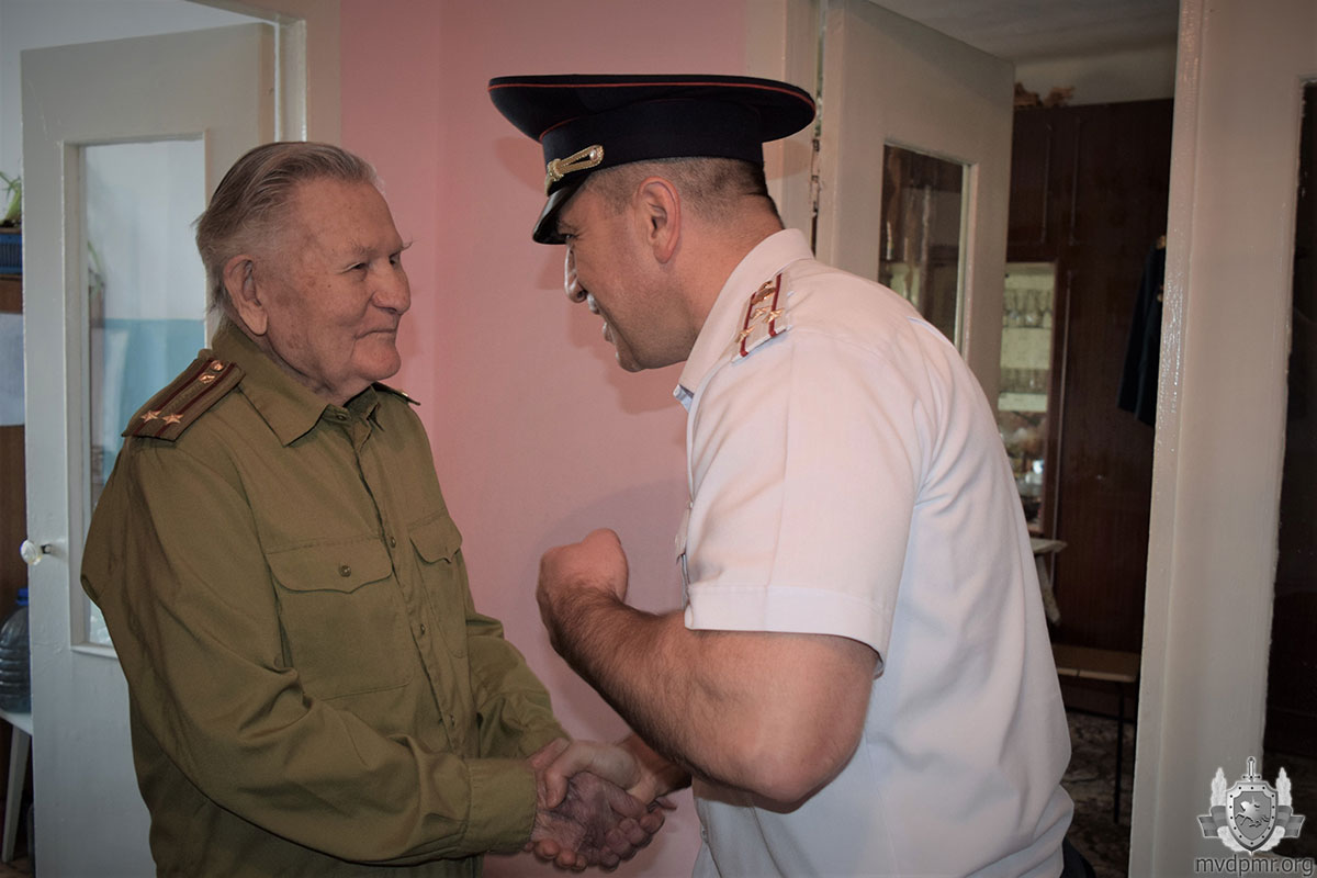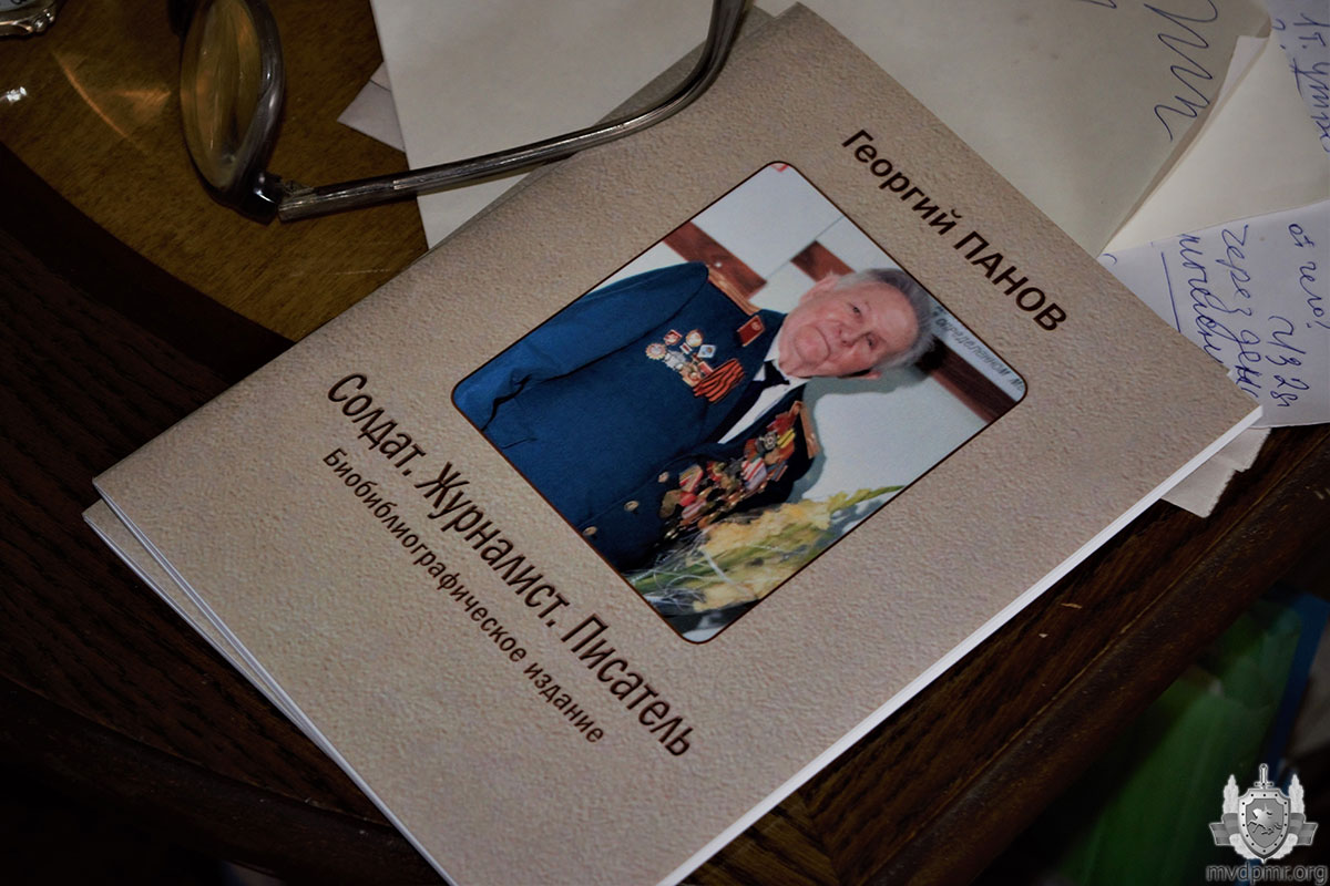 10 Ноя., 2019, 20:43Бендеры, 10 ноября. /Новости Приднестровья/. Начальник бендерского УВД Дмитрий Каргаполов в профессиональный праздник правоохранителей поздравил стражей порядка в запасе. Одним из первых, к кому милиционеры отправились с приятной миссией, стал ветеран Великой Отечественной войны, поэт и прозаик, член Союза писателей Приднестровья, кадровый офицер, подполковник запаса Георгий Яковлевич Панов.