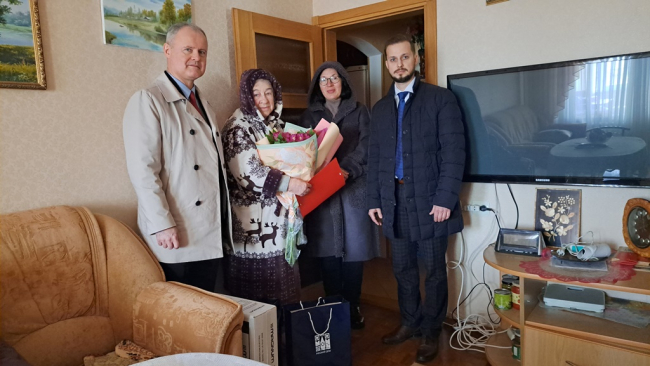Гости вручили ветеранам цветы, подарки и поздравительные адреса от губернатора Санкт-Петербурга Александра Беглова. В поздравлении – пожелания здоровья и благополучия, слова благодарности за отстаивание исторической правды, за сохранённый для потомков город, основанный Петром Великим.