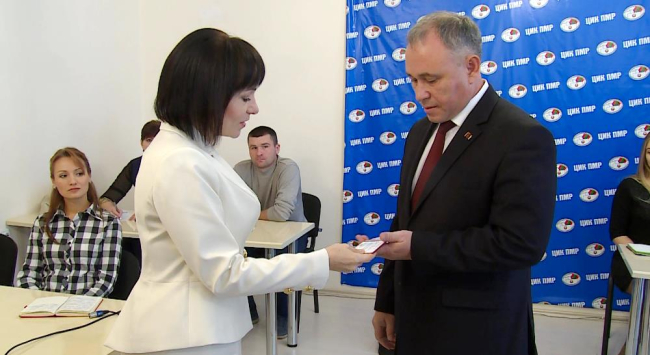 Тирасполь, 6 октября. /Новости Приднестровья/. В Центризбиркоме прошла процедура регистрации вновь избранных депутатов Верховного Совета. Напомним, ранее пустовавшие кресла двух парламентариев займут Юрий Кравчук, победивший на округе №4 «Ленинский» и Руслан Гареев, которого выбрали избиратели округа №7 «Первомайский». Председатель Центральной избирательной комиссии Елена Городецкая вручила им удостоверения депутатов, но в свои полномочия они вступят 11 октября, когда Верховный Совет признает их на своей сессии.