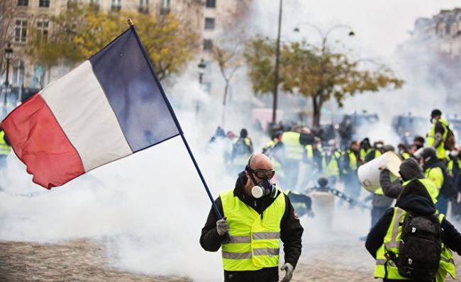 Масштабные акции протеста, в ходе которых участники в жёлтых светоотражающих жилетах блокировали дороги, начались в середине ноября на волне возмущения, вызванного повышением цен на топливо и введением новых налогов. В Париже и других городах протестами воспользовались хулиганы, устроившие беспорядки, погромы и грабежи. Правоохранительные органы Франции задержали с начала протестного движения более 4,5 тысяч человек, 4,1 тысячи из них были помещены под стражу.