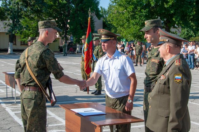 Тирасполь, 24 августа. /Новости Приднестровья/. Сегодня на базе мотострелкового подразделения Вооружённых сил ПМР новобранцы Тираспольского гарнизона приняли военную присягу.