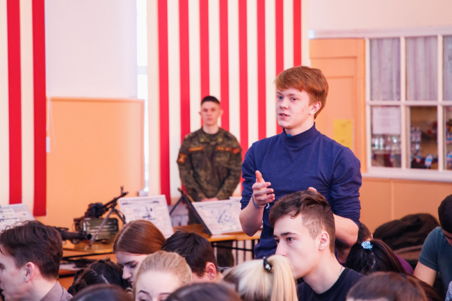 «Мы представляли сегодня наш военный вуз и постарались привлечь внимание молодых людей для поступления в учебное заведение. Отрадно, что в завершении презентации у молодых людей появился интерес к условиям поступления и учёбе в институте», – отметил преподаватель кафедры повседневной деятельности войск капитан Максим Граур.