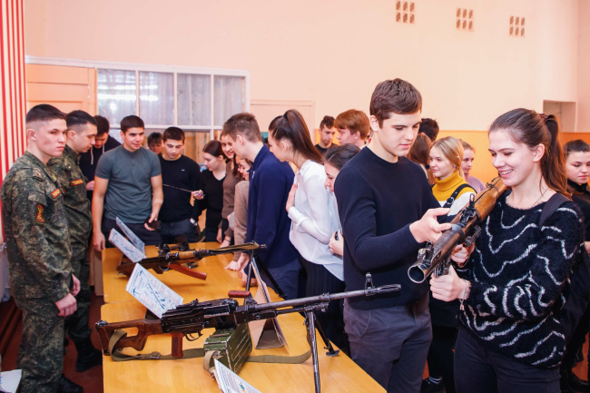 Офицеры рассказали школьникам об условиях поступления и о преимуществах обучения в единственном военном вузе республики. Ребятам показали презентационный видеоролик о буднях, учёбе и боевой подготовке курсантов Военного института. А выставка образцов вооружения нашей армии, а также эффектные приёмы рукопашного боя и приёмы самообороны в исполнении курсантов приятно удивили старшеклассников, сообщает пресс-служба Министерства обороны.