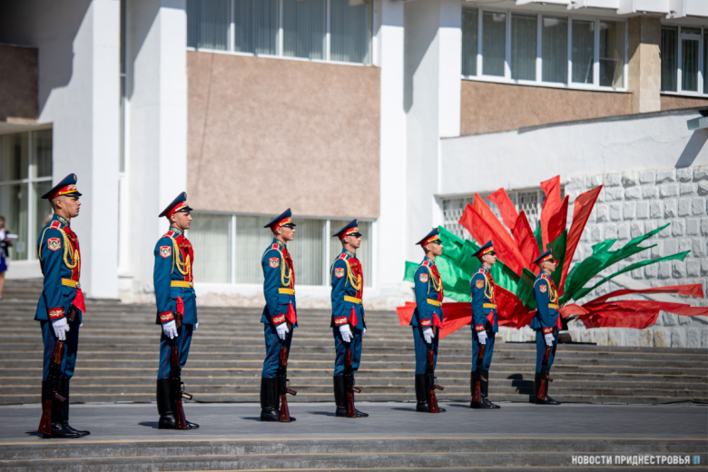 Троекратное «Ура!» парадных расчетов сменилось торжественным исполнением государственных гимнов Приднестровья и России.