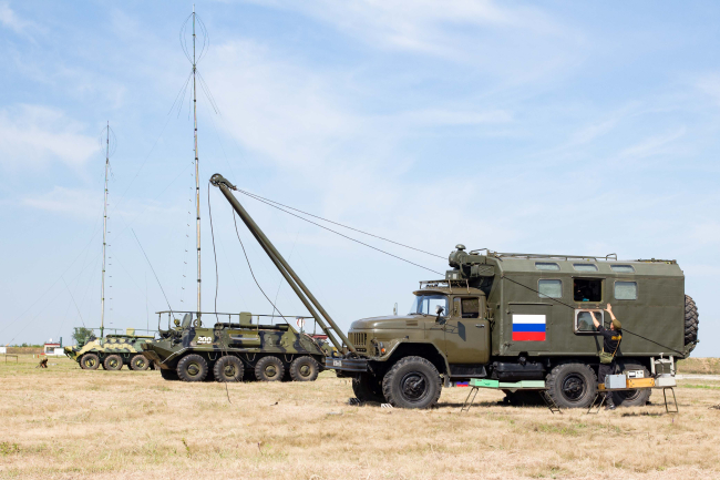 Специалисты ремонтного дела выполнили специальные нормативы по развёртыванию крана-стрелы ЗИЛ-131 и мастерской технического обслуживания.