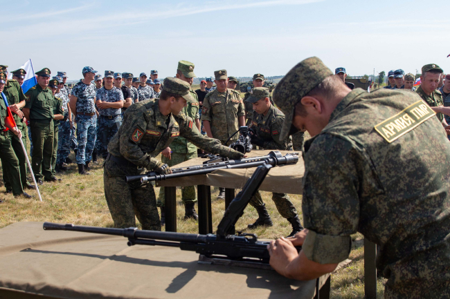Лучшее время в разборке-сборке вооружения БТР показала команда Министерства обороны, справившаяся с заданием за 1 минуту 50 секунд. Связисты Минобороны быстрее других выполнили норматив по развёртыванию радиостанции командно-штабной машины.