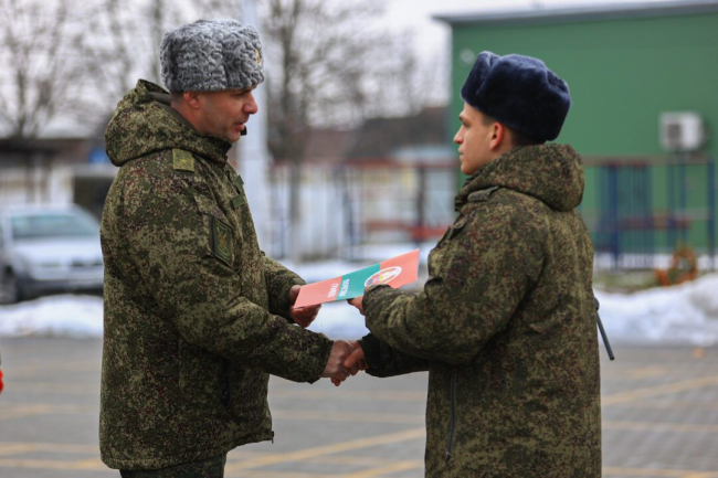 Праздничным приказом министра обороны лучших военнослужащих инженерно-саперного подразделения наградили почетными грамотами, присвоили очередные воинские звания.