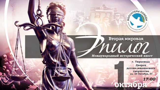 Тирасполь, 24 сентября. /Новости Приднестровья/. В столичном Дворце детско-юношеского творчества на следующей неделе «Волонтёры Победы Приднестровья» проведут международный исторический квест «Вторая мировая. Эпилог» для тираспольских школьников и студентов.