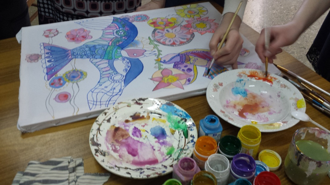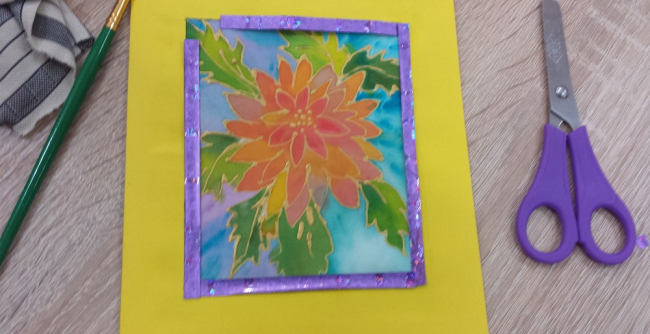 Старшие наставники из художественной школы научили ребят азам искусства росписи на ткани. Преподаватели рассказали об истории происхождения батика и показали, с помощью каких материалов можно создавать работы в этой технике. Затем дети приступили к изготовлению праздничных открыток.
