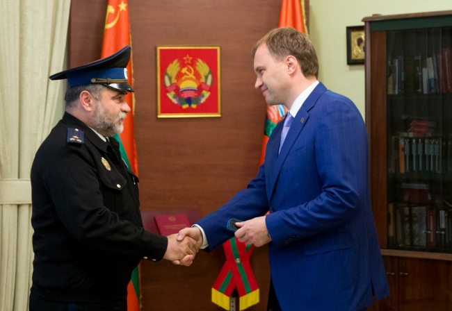 Тирасполь, 6 сентября. /ИА «Новости Приднестровья»/. За добросовестное выполнение служебного долга, высокий профессионализм и в связи с 26-й годовщиной со дня образования Приднестровской Молдавской Республики Президент Евгений Шевчук присвоил войсковому атаману Черноморского казачьего войска полковнику Игорю Небейголове воинское звание генерал-майора. Глава государства подписал соответствующий указ.