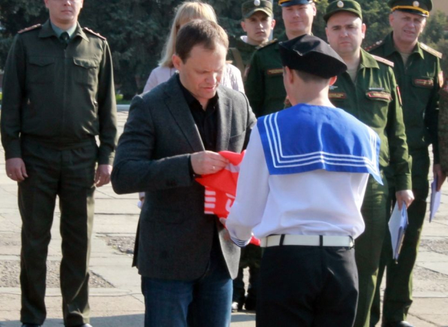 Как сообщает пресс-служба госадминистрации, руководитель передал юнармейцам копию Знамени Победы, которое команда-победительница торжественно пронесет 9 мая на шествии «Бессмертного полка».