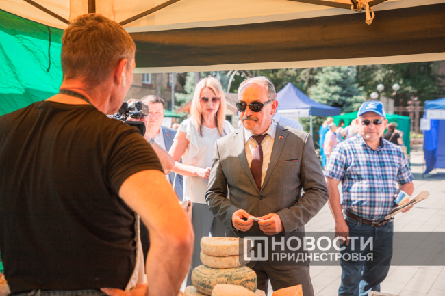 В числе тех, кто пришёл оценить продукцию приднестровских производителей, был и председатель Верховного Совета ПМР Александр Коршунов.
