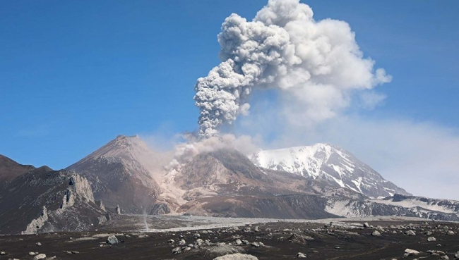 Вулкан Эбеко на Курилах выбросил столб пепла высотой 4,5 километра