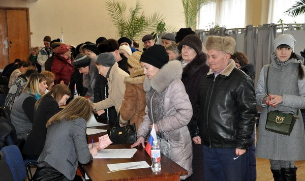 Нарушений на избирательном участке не зарегистрировано. Выборы проходят очень активно.