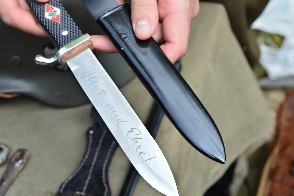В качестве дополнения были выставлены предметы экипировки подразделения «Гитлерюгенд»: покрытый мехом штурмовой ранец, боевой нож с надписью «Кровь и честь» на лезвии и настоящий фотоаппарат выпуска 1935 года. Иными словами, было на что посмотреть – таким артефактам позавидовал бы любой музей Великой Отечественной войны.