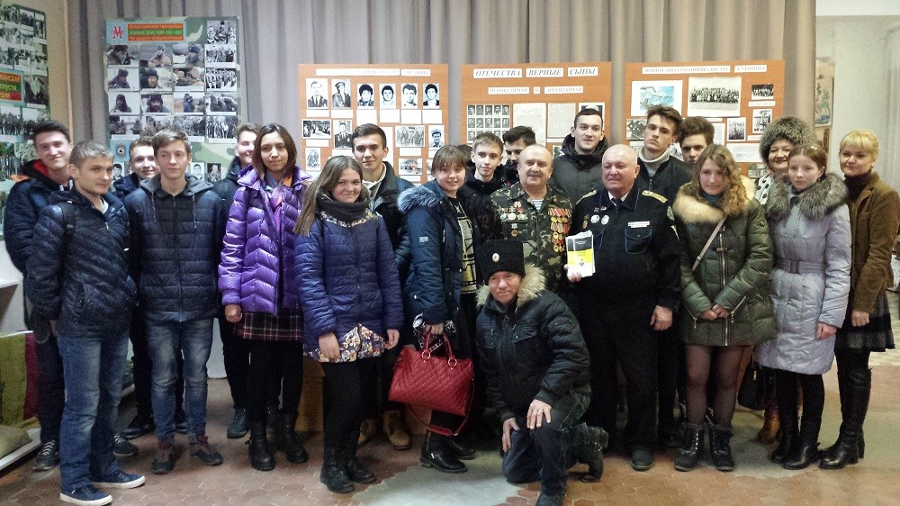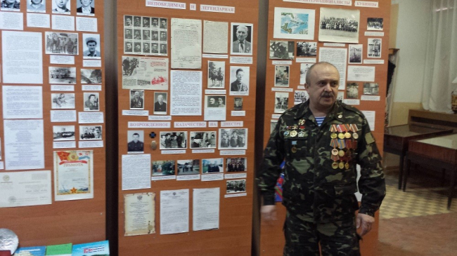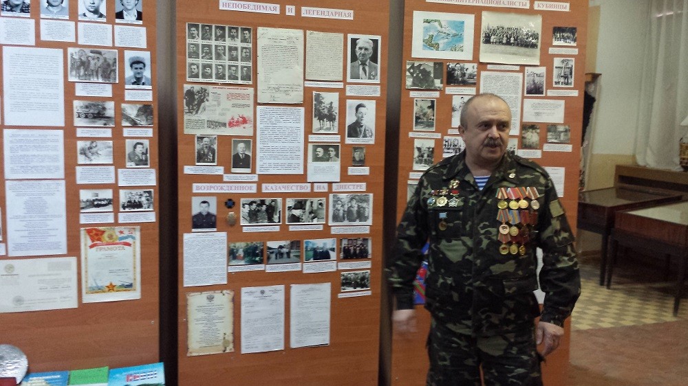 Сегодня, в день открытия выставки, поделились своими воспоминаниями с учащимися Дубоссарского индустриального техникума представители казачества и районного Союза ветеранов Афганистана. Об истории Черноморского казачьего войска на Днестре рассказал войсковой старшина Дубоссарского казачьего округа ЧКВ Вячеслав Клепковский.