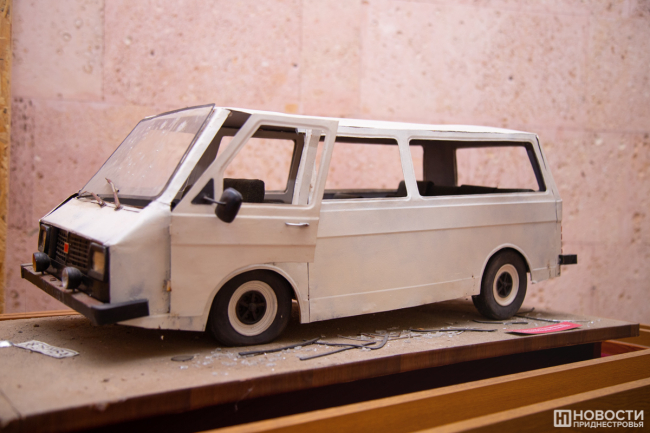 Есть на выставке и подлинный номерной знак от микроавтобуса гвардейцев, и макет этого микроавтобуса, на котором воспроизведены повреждения, полученные машиной во время боя.