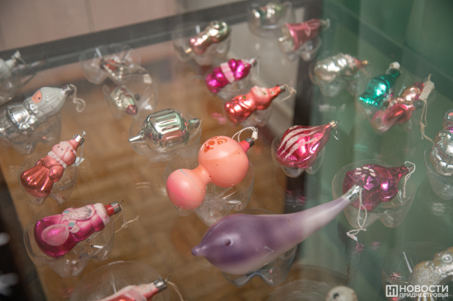 «На выставке представлены ёлочные советские украшения, поздравительные открытки, мишура, электрические гирлянды - всё то, без чего не обходилось празднование Нового года. Есть экспонаты, которым более 50 лет: это монтажные игрушки или игрушки-сцепки, воздушный шар, советская пятиконечная звезда и другие», - пояснила Ирина Герцова, отметив, что уже таких украшений не выпускают.