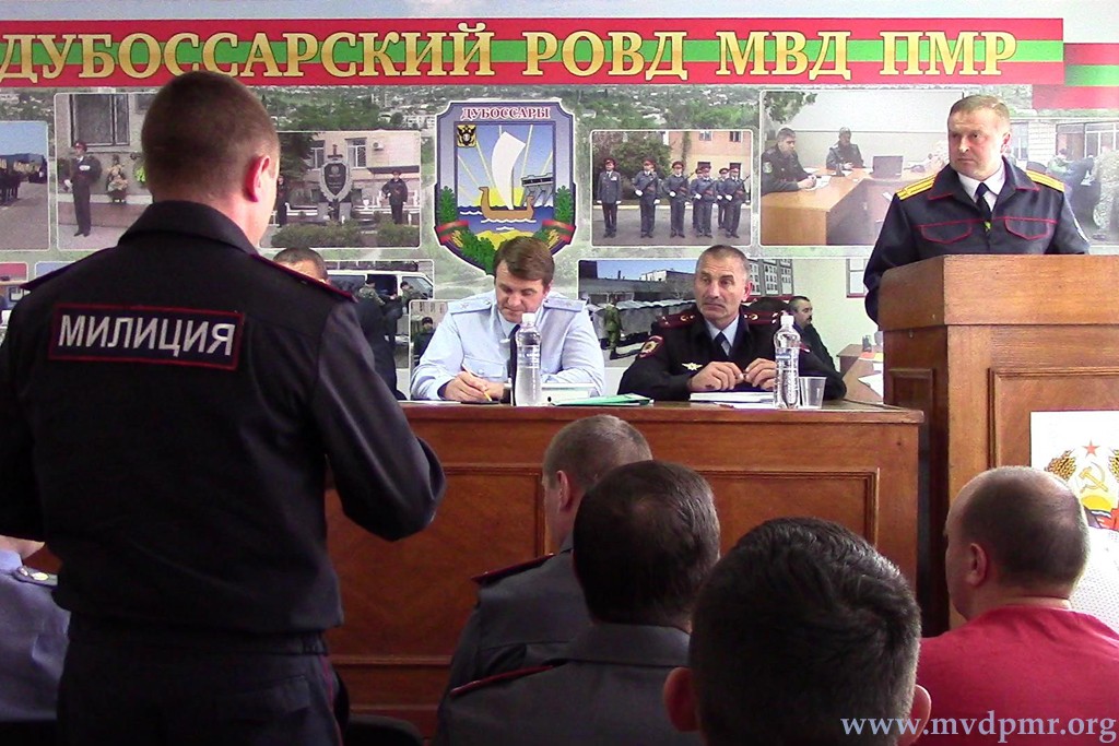 Дубоссары, 17 октября. /Новости Приднестровья/. В Дубоссарском РОВД прошло совещание с участием министра внутренних дел ПМР генерал-майором милиции Русланом Мова. В местном отделении подводили итоги работы оперативников за 9 месяцев, сообщает пресс-служба МВД ПМР.