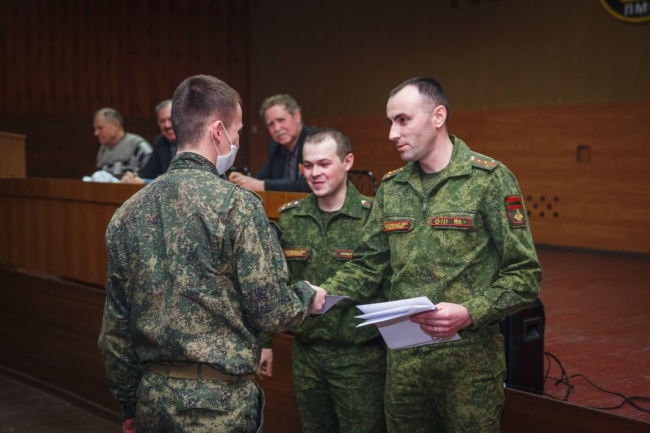 По окончании встречи в преддверии Дня защитника Отечества курсантов-отличников наградили почетными грамотами. За добросовестное выполнение обязанностей и отношение к учебе ряду курсантов были присвоены очередные воинские звания.