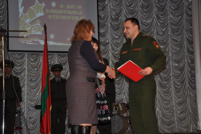 Каменка, 22 февраля. /ИА «Новости Приднестровья»/. Сегодня в Каменке чествовали защитников Отечества, сообщает пресс-служба местной госадминистрации. Фойе районного Дома культуры, в котором прошло праздничное мероприятие, встречало каменчан и представителей сельских населенных пунктов района тематическими выставками «Была война, была Победа», «Предметы военного времени», «Держава армией крепка», подготовленными сотрудниками комплекса мемориальных музеев и центральной библиотечной системы, а также выставкой работ учащихся местной детской художественной школы.