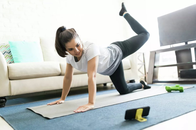 - Физическая нагрузка. В этот пункт входит минимальный набор упражнений, а также прогулки на открытом пространстве. К упражнениям, которые можно делать в домашних условиях, относятся: приседания, отжимания, пресс, растяжка, прыжки на скакалке. Их можно делать трижды в день по 10 минут: утром в качестве зарядки, днём как разминку и вечером.